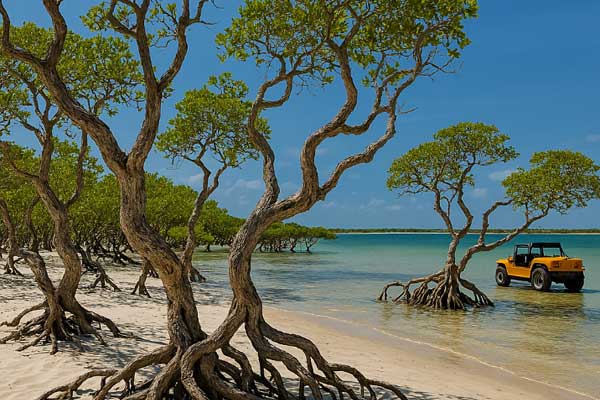 Seguiremos para o trecho das dunas, com 6 km de percurso e paradas opcionais para skibunda e toboágua.